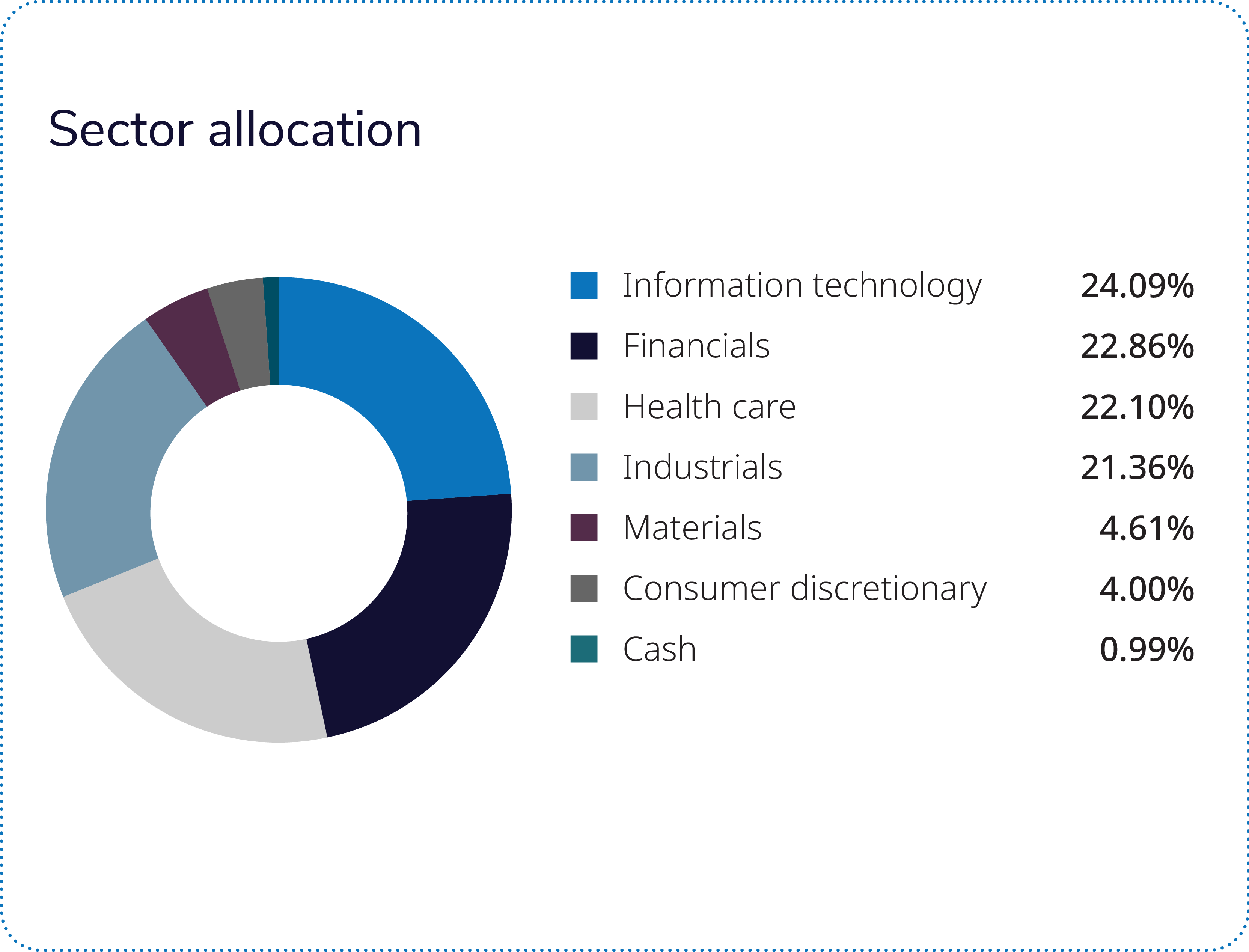 From an allocation perspective, being overweight in health care and financials and underweight in technology were the largest relative detractors.