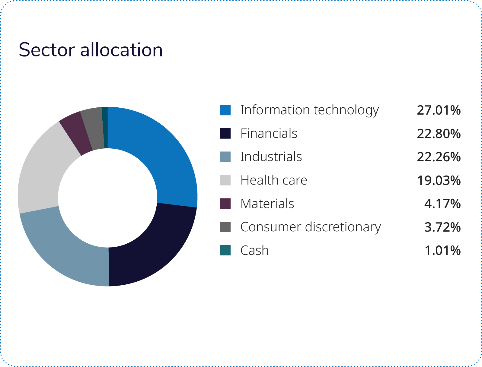 From a sector perspective, health care, information technology and financials were the leading contributors in the quarter.