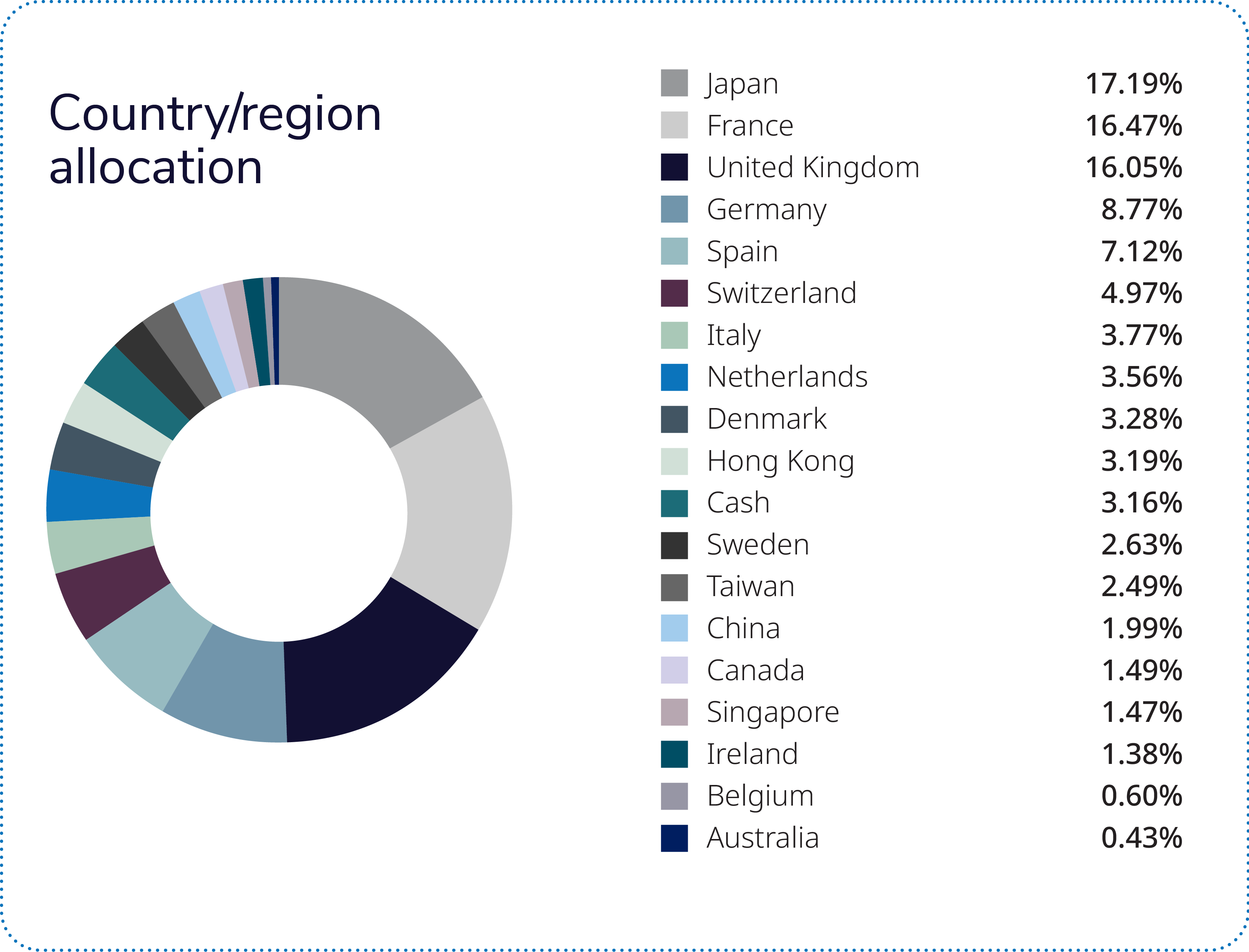 Financials weighed on performance, particularly investments in financial exchanges, such as the London Stock Exchange, which declined on concerns over slowing subscription growth and competitive pressures, and a lack of exposure to Japanese banks.