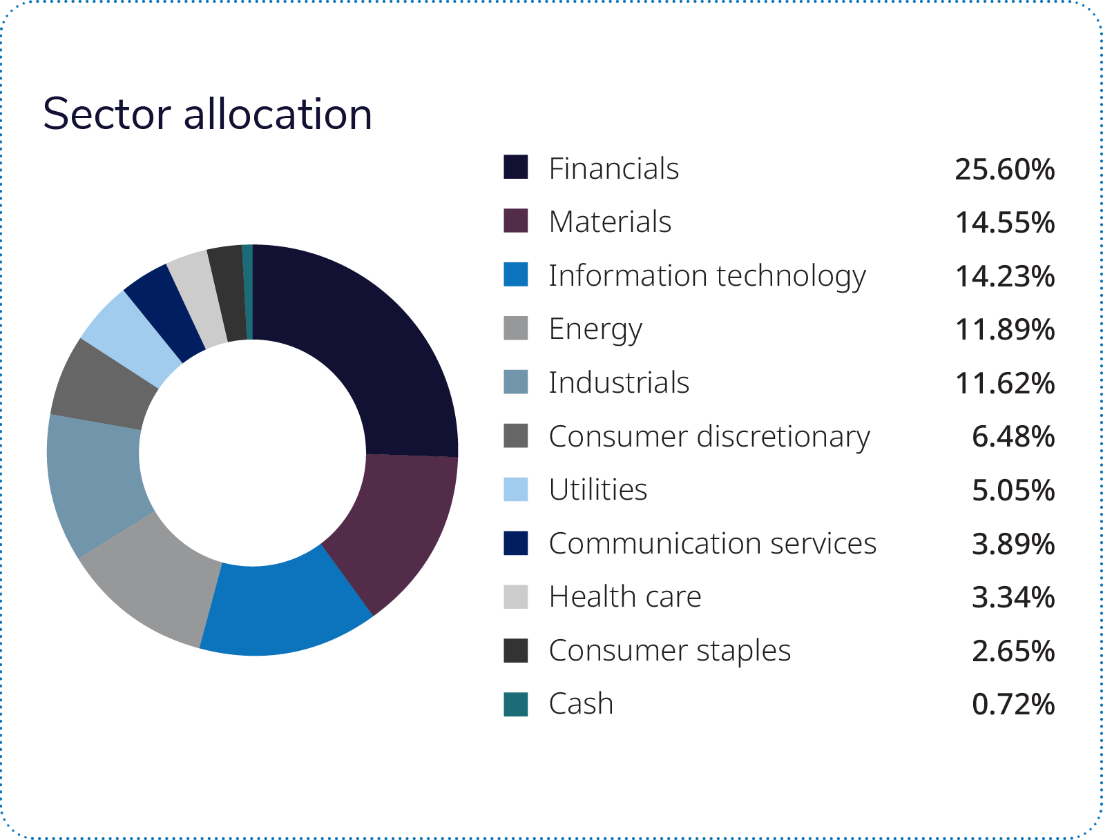 ① Positive returns for the mandate, but it underperformed the benchmark. Positive stock selection in U.S. and Canadian industrials and energy sectors contributed positively.