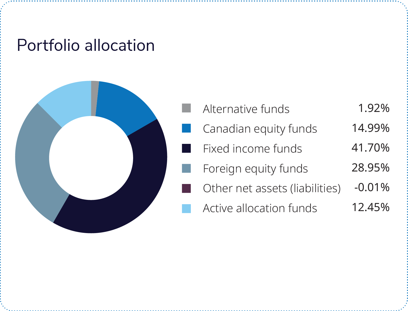 ① The portfolio rose over the period, with positive contributions coming from most of the component funds and pools, especially Canadian equities and select global equities.
