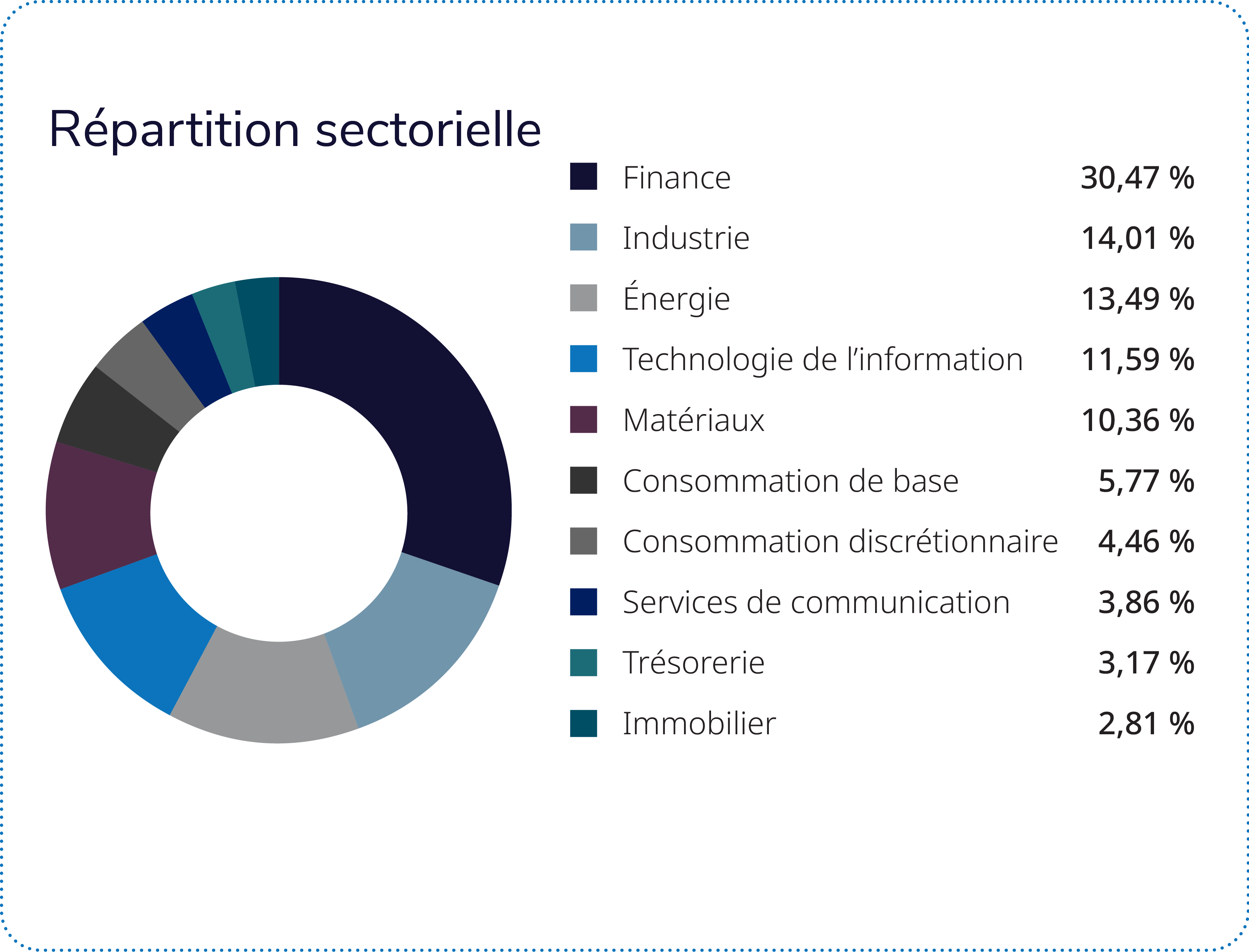Ces rendements positifs ont été atténués par l’effet négatif de la sous-pondération des matériaux (en particulier l’or) et de la surpondération de l’industrie.