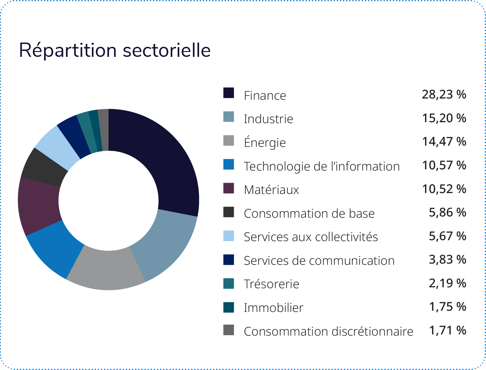 ① Les rendements absolus positifs réalisés par le mandat au dernier trimestre de 2025 résultent principalement de la répartition du portefeuille dans les secteurs de la finance, de l’énergie et des services aux collectivités.