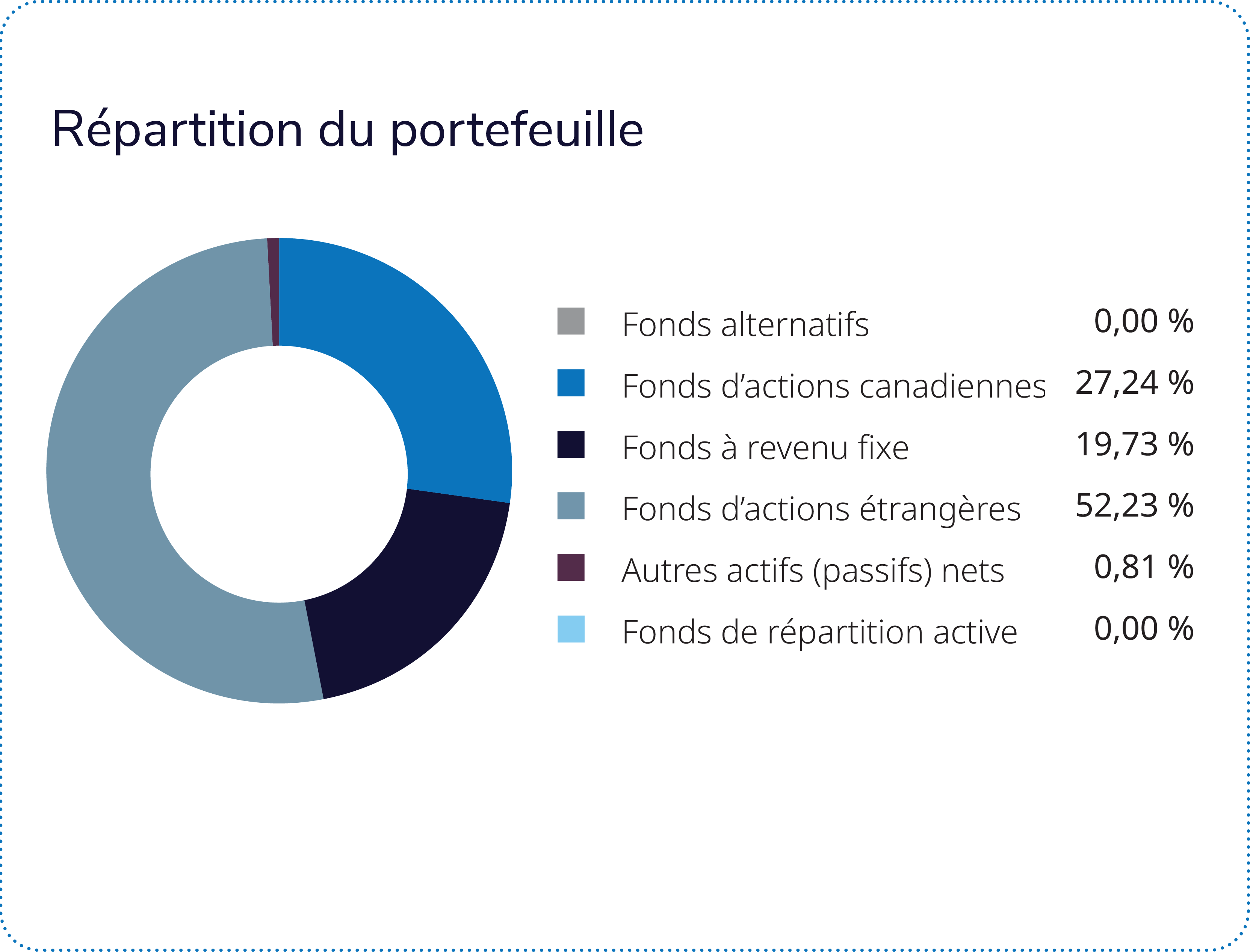 Les placements dans les fonds communs peuvent donner lieu à des commissions ainsi qu’à des frais. Veuillez lire le prospectus avant d’investir. Le taux de rendement indiqué représente le rendement composé annuel total au 30 septembre 2025, y compris les variations de la valeur et le réinvestissement de tous les dividendes ou distributions. Il ne tient pas compte des frais d’acquisition, de rachat, de distribution ou facultatifs ni des impôts sur le revenu payables par tout(e) porteur ou porteuse de titres et qui auraient réduit le rendement. Les fonds communs ne sont pas des placements garantis, leur valeur varie fréquemment et leur rendement antérieur peut ne pas se reproduire. Les fonds communs, produits et services de placement sont offerts par la Division des fonds communs de placement d’IG Gestion de patrimoine Inc. (au Québec, cabinet en planification financière). D’autres produits de placement et des services de courtage sont offerts par le Courtier en placement, IG Gestion de patrimoine Inc. (au Québec, cabinet en planification financière), membre du Fonds canadien de protection des investisseurs.